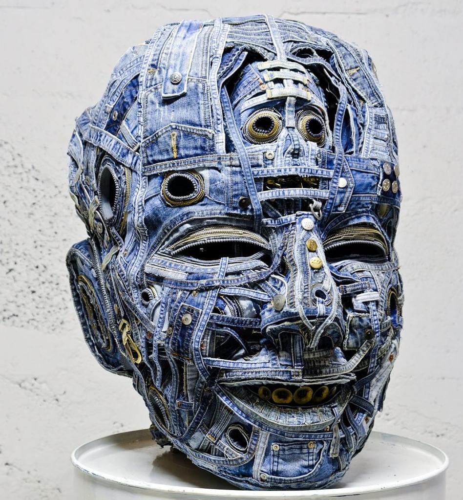 Non ho potuto guardarmi allo specchio, ma vi garantisco che trovarsi di fronte a una delle sculture in denim di Afran, illumina lo sguardo. Non si può fare a meno di spalancare gli occhi, perché lo sguardo vuole di più, desidera di più, anela alla totale comprensione di ciò che sta osservando.