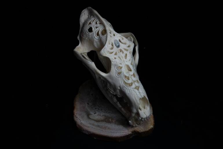Grim: Non del tutto. Già da bambino avevo questa passione. Ricordo che una volta, avrò avuto 9 o 10 anni, ho provato a ricostruire lo scheletro di un pollo. Ho fatto bollire il pollo intero e ci ho provato per poi rendermi conto che era un po’ troppo per le mie capacità di allora. Invece adesso qualcosina riesco a creare! Però sì, è rimasta per anni una passione non definita. Mi sono sempre occupato di marketing, ho fatto lo scrittore e il fotografo, ma questo prima di Sirah mai. Sirah è stata la prima in Italia a occuparsi di skull carving. L’ho conosciuta tramite una mia ex a cui ha insegnato il lavoro e dopo un po’ di tempo mi sono offerto di farle da centro logistico e ufficio marketing. Da quel momento ho preso a occuparmi del reperimento dei materiali, di progetti divulgativi e poi mi sono ufficialmente messo a costruire qualcosa anche io. Nel tempo si sono poi uniti a noi i WildMatters, Magda, Varg, Niki …