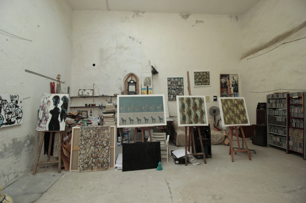 Silvano: Bella domanda… Intanto bisognerebbe che ci fosse più produzione artistica da proteggere! Per quella che c’è, che comunque non è poca, sì! Anzi, forse da un lato è fin troppo protettiva Bussana Vecchia. Perché dall’altro lato non è così semplice, rispetto al mondo esterno dell’arte, interagire. Quello che ci denota qui al villaggio è la mancanza di bisogno di interagire con l’attività artistica esterna. Anche se ci ritroviamo in queste dinamiche, perché molti creativi passano di qui in visita e ci ritroviamo a dover interagire. Con il mondo dell’arte quello blasonato o affaristico personalmente non ho molto a che fare. Io poi essendo un misantropo naturale soffro di moltitudine e mi trovo in questo posto perché amo poco il chiasso… Pur facendo il musicista! E’ un ossimoro, ma è così! (ridiamo) Quindi per rispondere alla tua domanda: non so quanto questo posto favorisca un’interazione programmatica con il mondo esterno dell’arte.